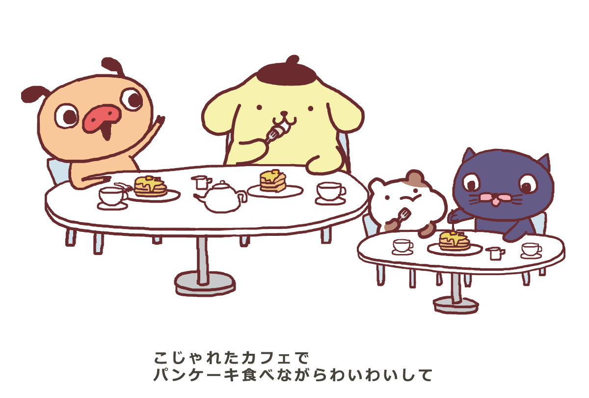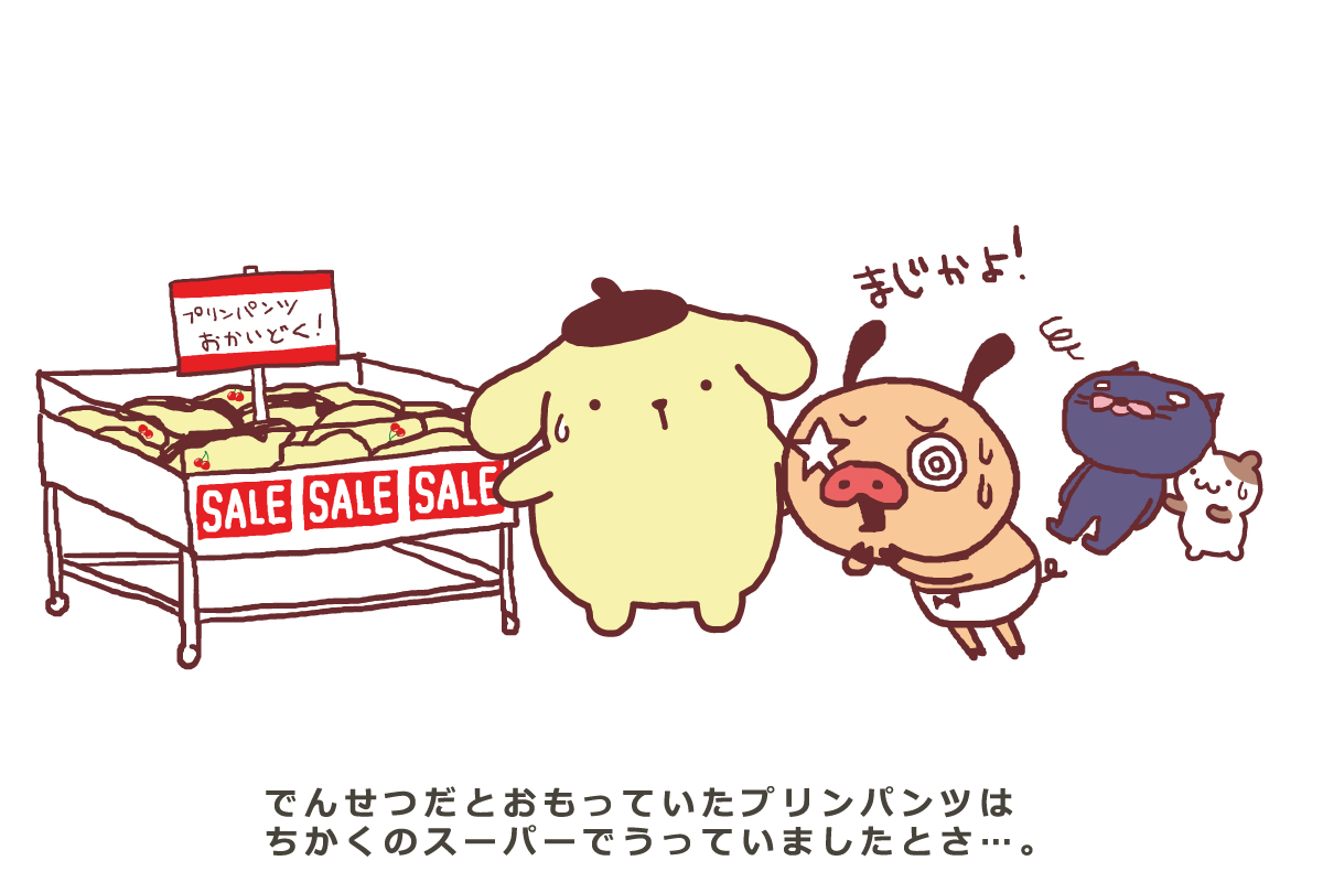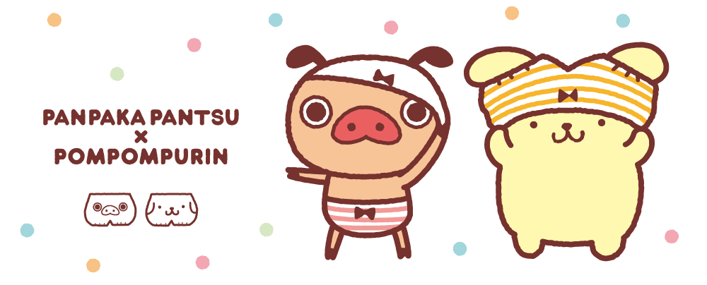 パンツとプリンがコラボ中! パンツ大好きこぶたの男のコ「パンパカパンツ」が、パンツ探しの旅の途中、「ポムポムプリン」と運命の出会い!?そんな2人の出会いのストーリーや、コラボグッズなどの最新情報をお届けします!